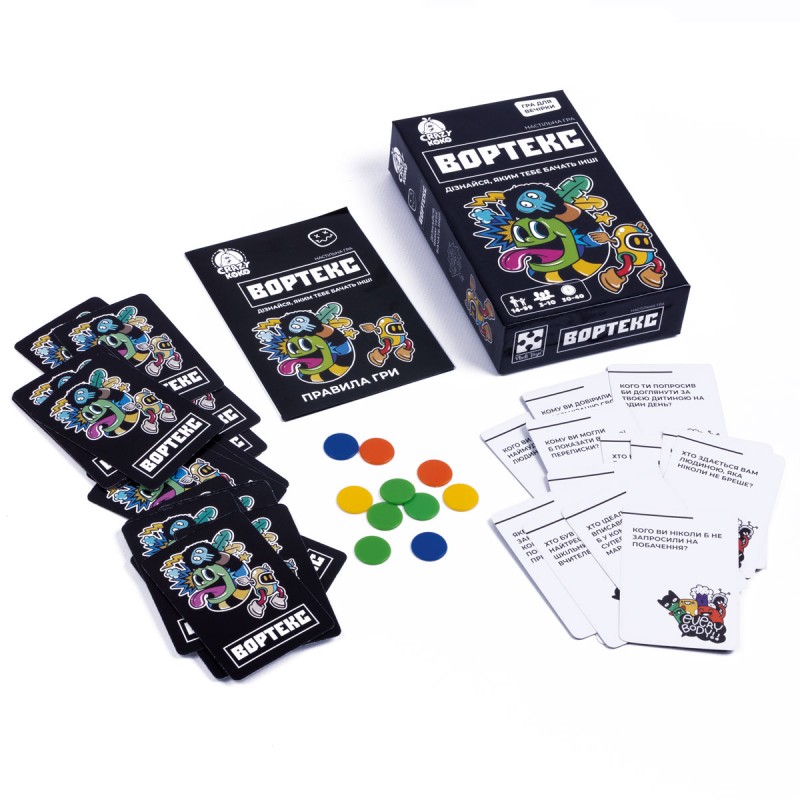Независимо от того, большая у вас компания или вы просто хотите провести время с самыми близкими людьми, настольная развлекательная игра "Вортекс" станет отличным дополнением к любому вечеру. Благодаря забавным вопросам и неожиданным голосованиям вы сможете расслабиться и посмеяться. Читайте забавные вопросы, отдавайте жетон тому, за кого голосуете. Узнайте новые факты о себе, близких и просто наслаждайтесь компанией. Гарантируем море положительных эмоций!